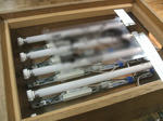 懐かしい…、この箱型露光機を作るまでは、太陽光で露光していた。20分~30分くらいかかるので、限られた時間の中で作業しなければならない事と、授業のほとんどを露光時間にかかるのはとても現実的ではなかったので、自作に踏み切った。