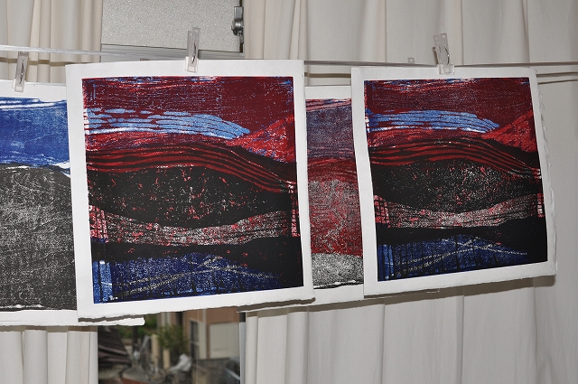 手漉きの和紙は一尺三尺(60×90くらい)がやっと摺れる大きさしかないから、二裁の作品は絶対紙を繋ぐしかない(機械漉きの大きな紙を使えば別ですよ)